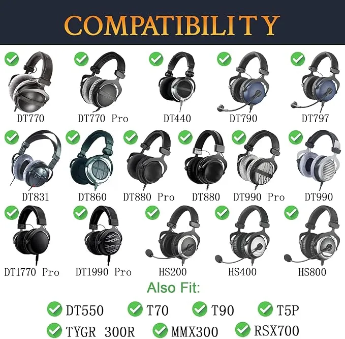 Les coussinets SoulWIT sont compatibles avec les modèles DT 770, DT 880, DT 990 et d’autres casques circum-auraux Beyerdynamic. Cette compatibilité garantit une installation facile et un ajustement parfait, sans affecter la qualité sonore.